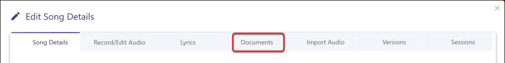 The purpose of the Documents tab is to allow you to import a copy of all documents related to the song in which you are working. For example, you can attach: