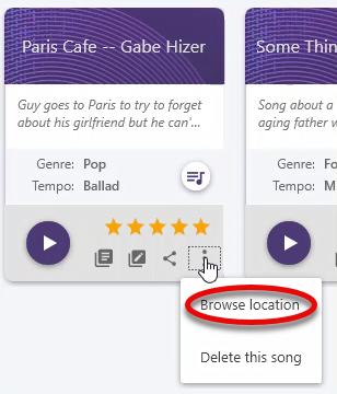 3. To find the song, open SongwritersdB and use the Browse Location option within the song tile:
