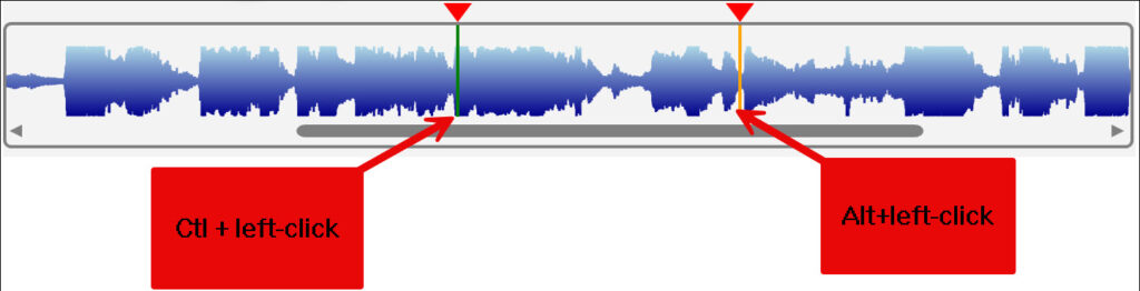 Use the “Zoom” slider to increase or decrease the height of the audio wave form as necessary. Use the horizontal scroll bar to move left and right in time, in the audio recording.